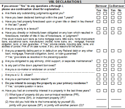 The article also mentions the importance of answering questions properly on a loan application, specifically section eight about declarations (see below).